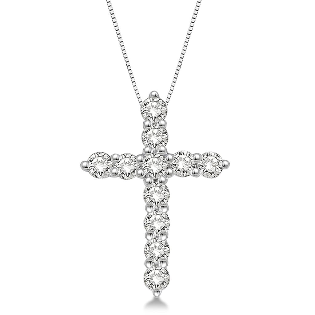 Davis Classics 14k White Gold Diamond Cross Pendant Necklace
