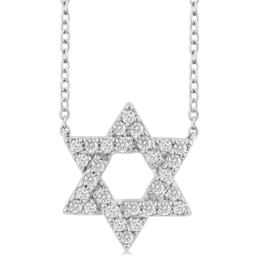 The Davis Classics 14k White Gold Diamond Star of David Pendant Necklace is a beautifully crafted symbol of faith and elegance. This adjustable 16-18" necklace features a Star of David pendant adorned with 30 pave-set round brilliant cut diamonds, totaling 0.24 carats, with I/J color and SI2-I1 clarity. The diamonds add a subtle sparkle to the timeless design, making this necklace a meaningful piece for everyday wear or special occasions. Secured with a spring ring clasp, this necklace offers both versatility and ease of wear. Ideal for those who appreciate the blend of spirituality and style, this diamond Star of David pendant is a thoughtful and elegant expression of faith.