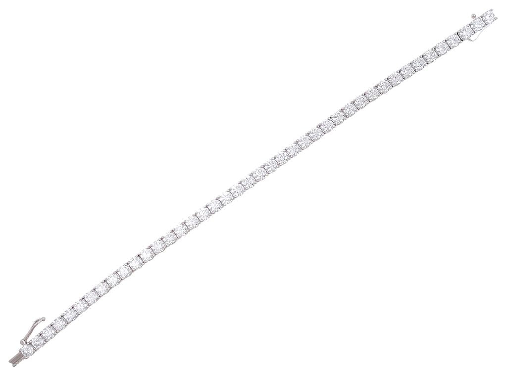 This extraordinary 14k white gold tennis bracelet exudes brilliance with 42 round brilliant-cut diamonds, each measuring 4.2 mm and totaling 10.10 carats. The diamonds, with G/H color and SI1 clarity, are set in a timeless 4-prong straight-line design that radiates unmatched sparkle and sophistication. Measuring 7 inches in length and secured with a push clasp and safety lock, this bracelet is the epitome of refined luxury, destined to be treasured for a lifetime.