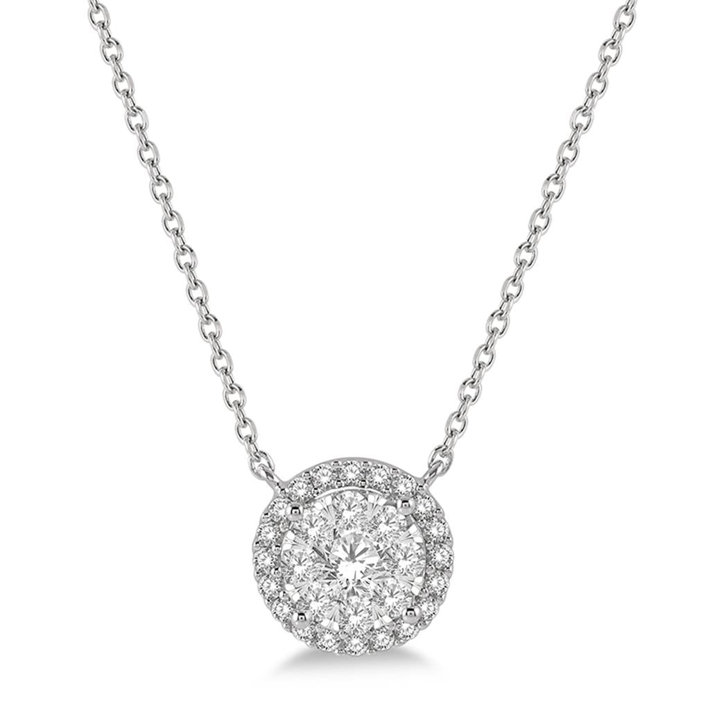 Davis Classics 14k White Gold Halo Style Endless Diamond Pendant Necklace