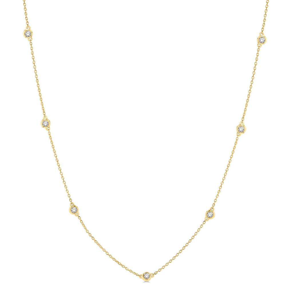 Elevate your everyday style with this Davis Classics 14k yellow gold adjustable Diamond by the Yard necklace. Featuring 11 bezel-set round brilliant cut diamonds totaling 0.33ctw of I/J color and SI2-I1 clarity, each 2mm diamond sparkles along the adjustable 16-18" chain. Finished with a secure lobster clasp, this timeless design adds a touch of understated elegance to any outfit.
