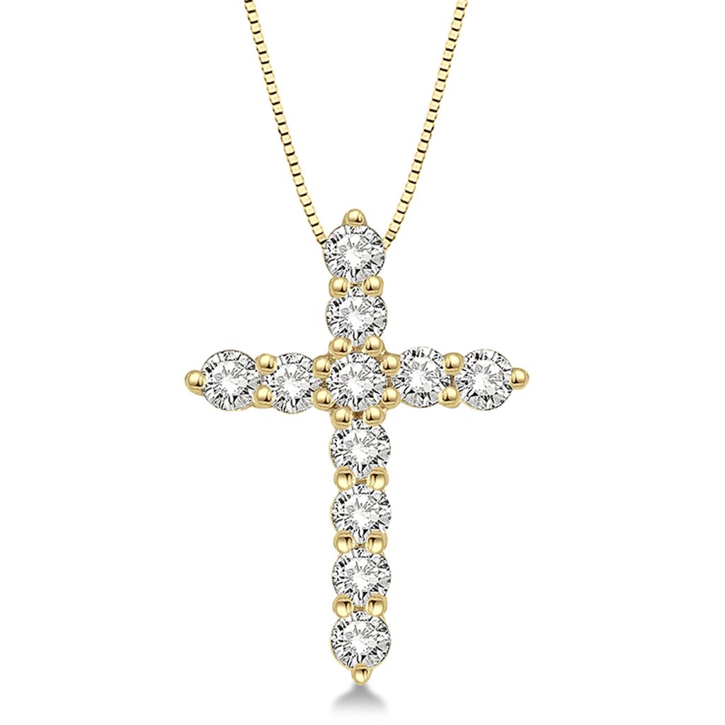 This radiant Davis Classics 14k yellow gold cross pendant necklace showcases 11 prong-set round brilliant-cut diamonds, totaling 0.50 carats, with I/J color and SI2-I1 clarity. Designed with an adjustable 16-18" chain and a secure lobster clasp, this timeless piece exudes elegance and a meaningful sense of devotion.