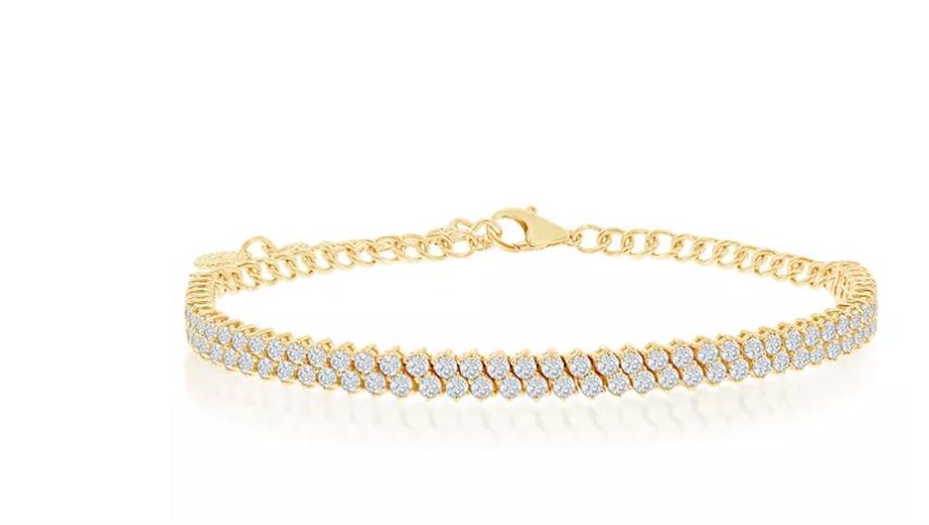 Davis Classics 14k Yellow Gold Double Row Diamond Tennis Bracelet