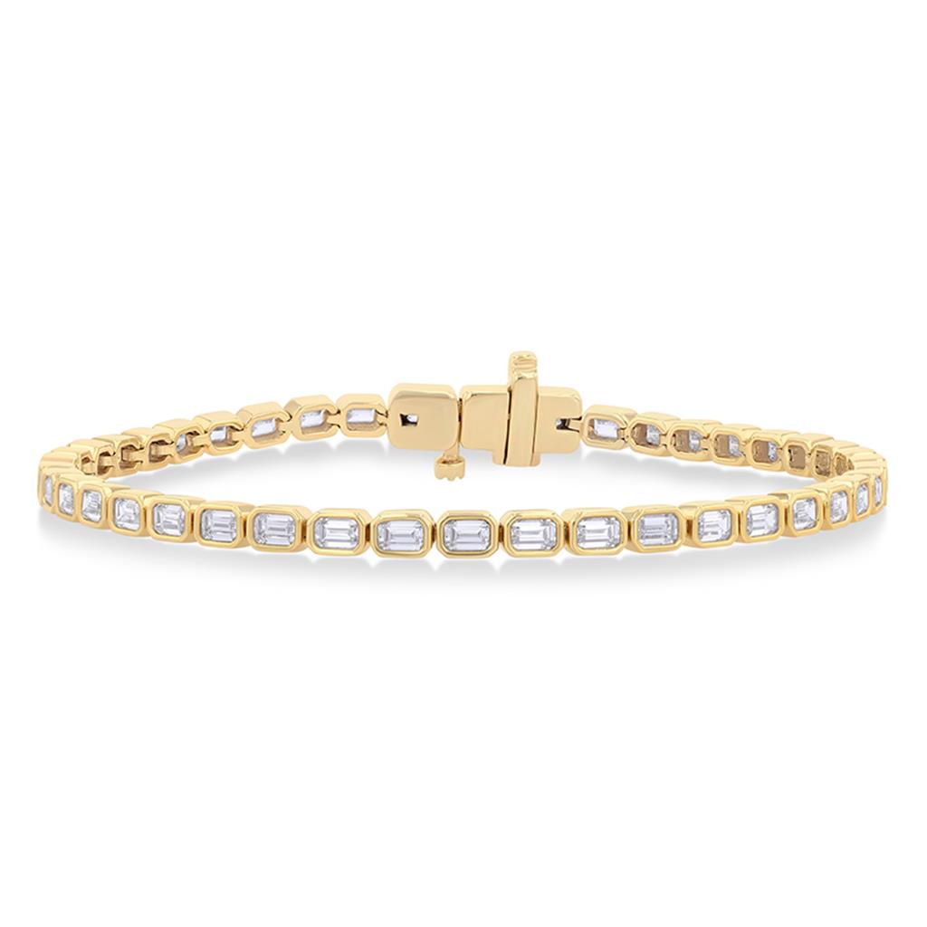 Davis Classics 14k Yellow Gold Emerald-Cut Diamond Tennis Bracelet