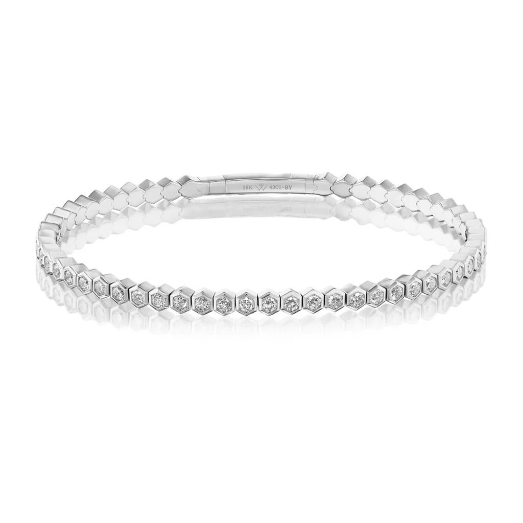 Davis Classics 18k White Gold Hexagon Flex Collection Diamond Bangle Bracelet