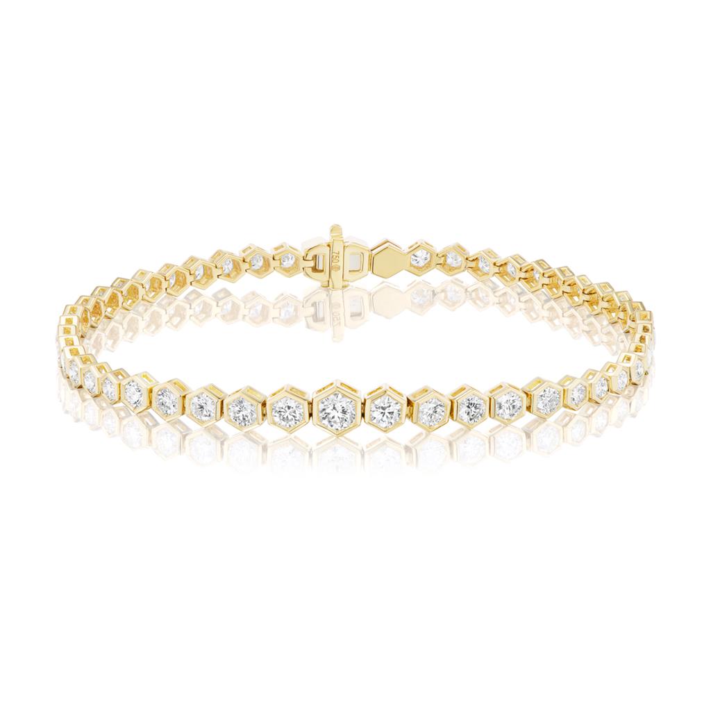 Davis Classics 18k Yellow Gold Hex Broadway Diamond Tennis Bracelet