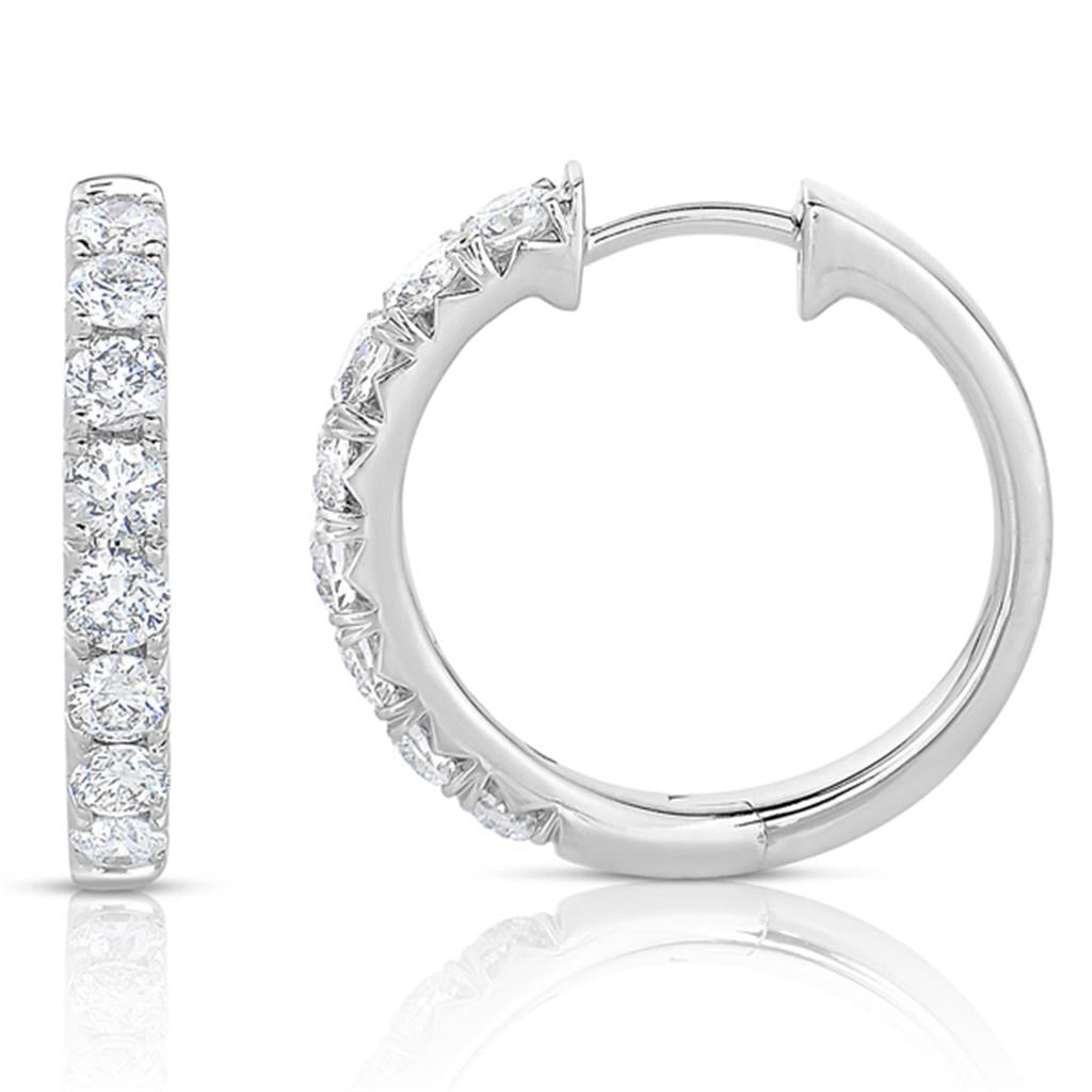 Davis Signature Collection Diamond Hoop Earrings in 14k White Gold. Featuring 1.00ctw Round cut Diamonds.