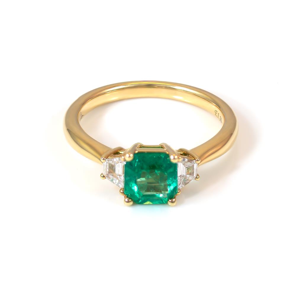 Davis Luxe 18k Yellow Gold Emerald and Diamond Three-Stone Ring