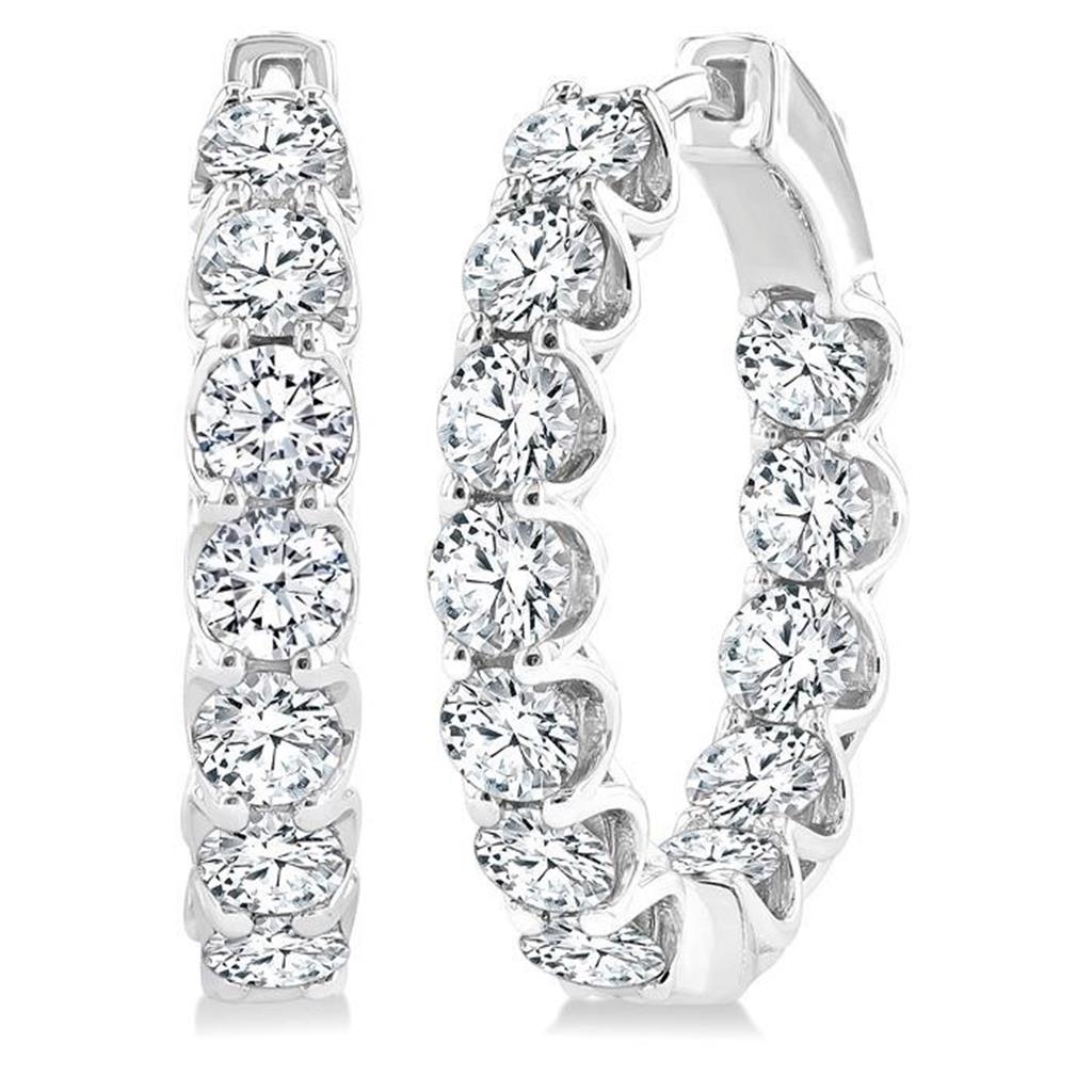 Set along both the inside and outside of each hoop, the diamonds create a continuous circle of sparkle from every angle. Graded I/J color with SI2–I1 clarity, they offer bold brilliance and eye-catching presence.