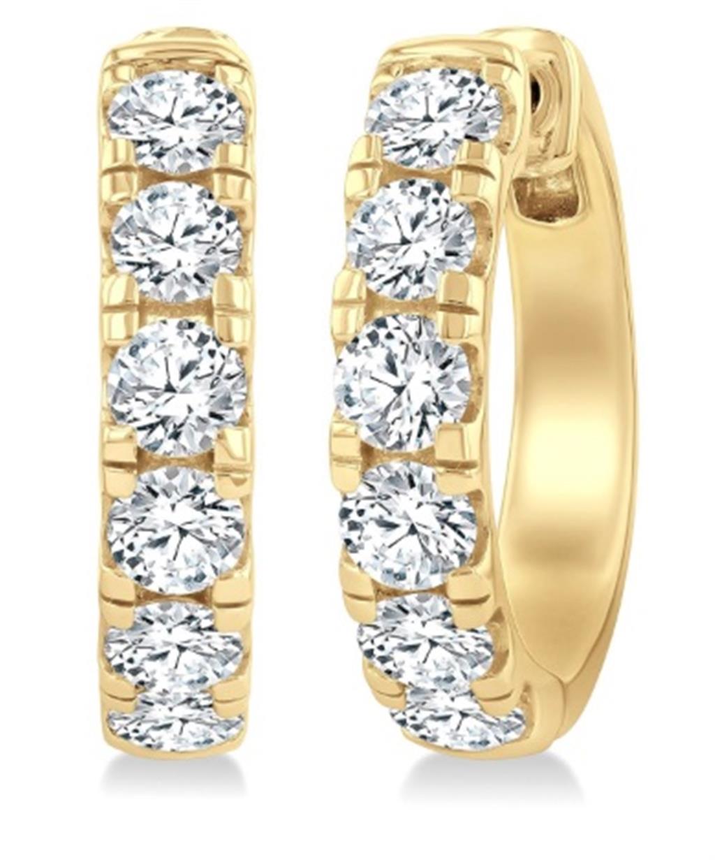 Bold and timeless, these Davis Signature hoop earrings are crafted in rich 14k yellow gold and measure approximately 22mm in diameter. The elegant design features 12 prong-set round brilliant-cut diamonds measuring approximately 4mm, totaling an impressive 3.00 carats.