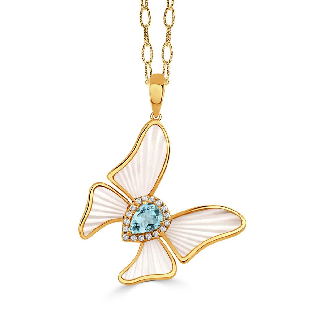 Doves Ondelle Collection Mother Of Pearl, Blue Topaz and Diamond Necklace