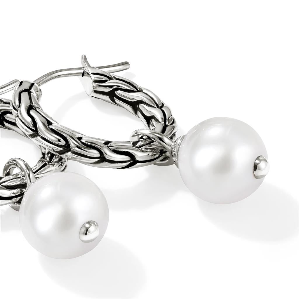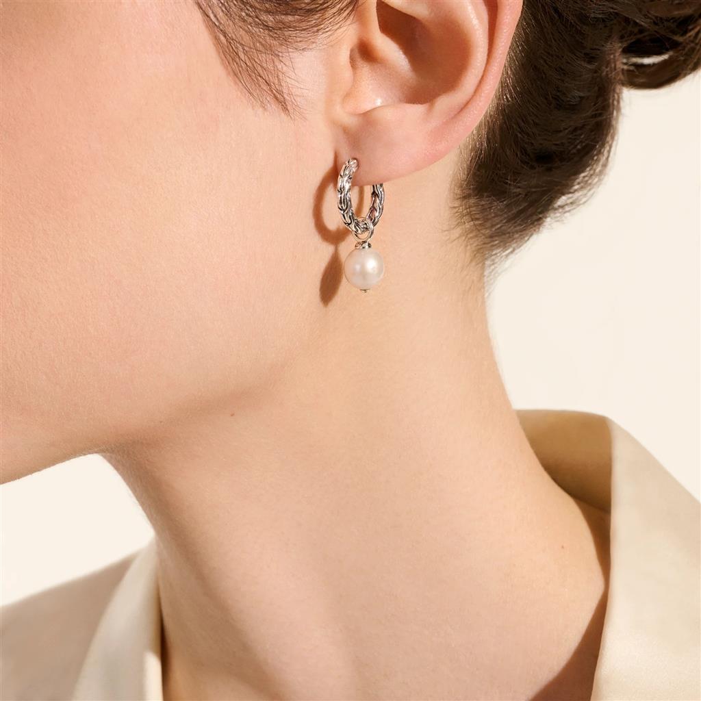 A convertible hoop earring in reclaimed sterling silver with a choice freshwater pearl. The pearl is detachable, for two looks in one. Artisan handcrafted. Style no. EB987261