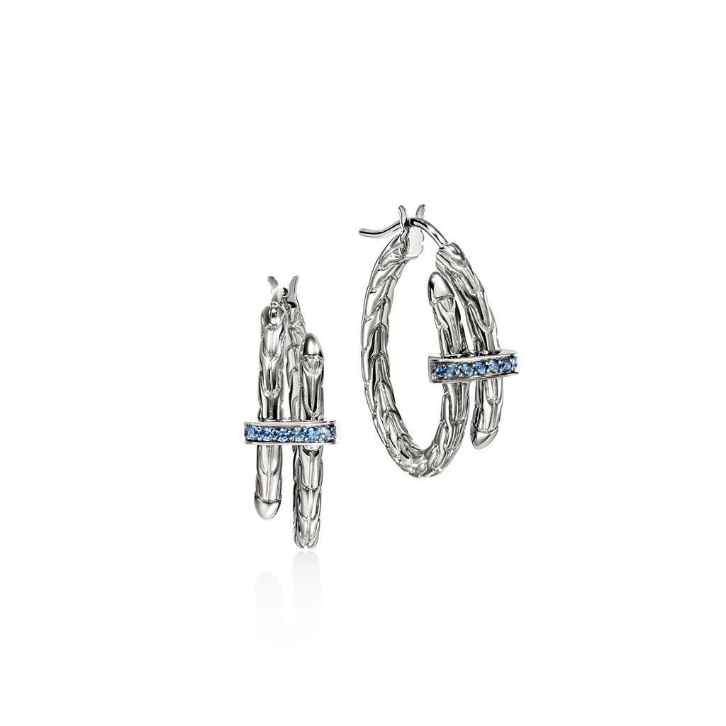 John Hardy Sterling Silver Spear Hoop Sapphire Earrings