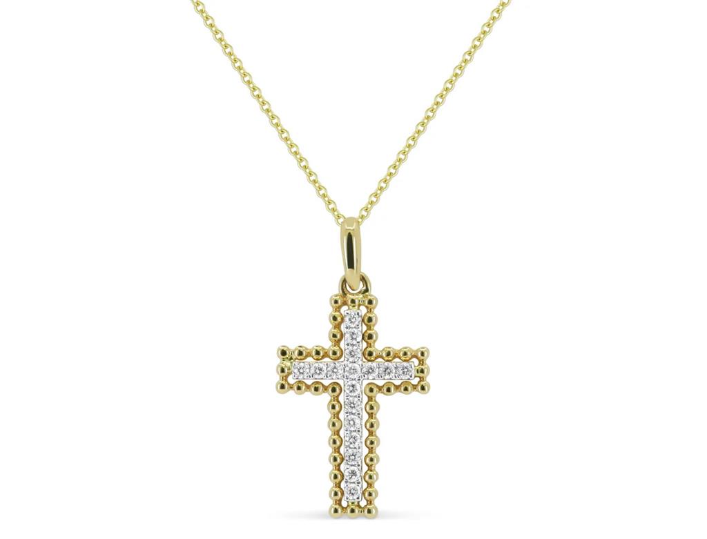 Davis Signature Collection Cross Novelty Diamond Necklace in 14k Yellow Gold, Length: 18". Featuring 0.16ctw Round Cut Diamonds.