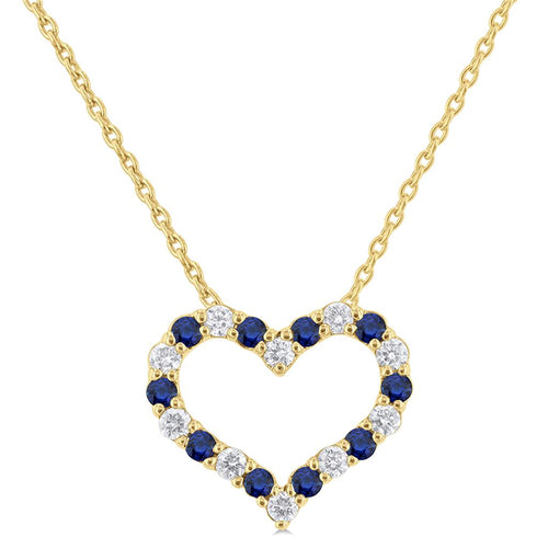 Davis Signature 14k Yellow Gold Sapphire and Diamond Heart Pendant Necklace