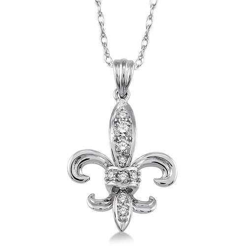 Davis Signature 14k White Gold Diamond Fleur de Lis Pendant Necklace