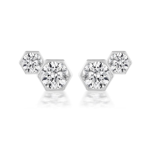 Davis Luxe 18k White Gold Hex Broadway Diamond Stud Earrings