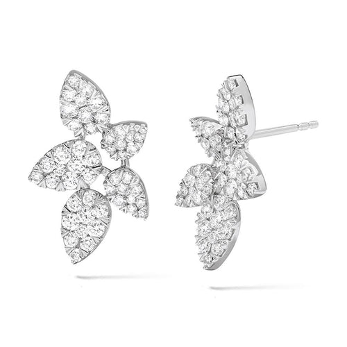 Davis Luxe 18k White Gold Fiori Floral Diamond Stud Earrings