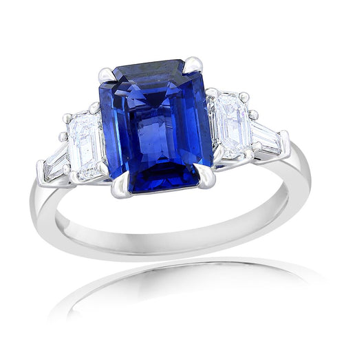 Davis Luxe Platinum Three-Stone Blue Sapphire and Diamond Ring