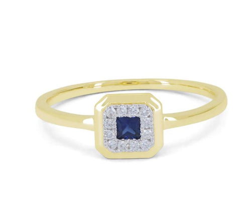 Davis Signature 14k Yellow Gold Halo Design Fashion Ring with Blue Sapphire