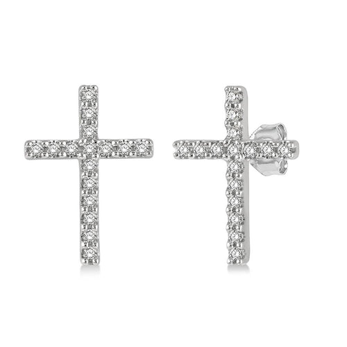 Davis Signature 14k White Gold Diamond Cross Stud Earrings