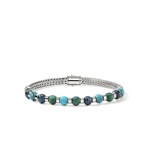 John Hardy Sterling Silver Chrysocolla, Malachite, and Turquoise Beaded Bracelet