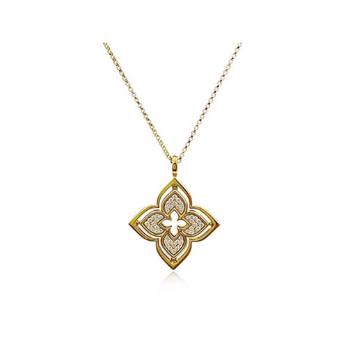 Roberto Coin 18k Yellow Gold Venetian Princess Pirouette Diamond Floral Pendant Necklace