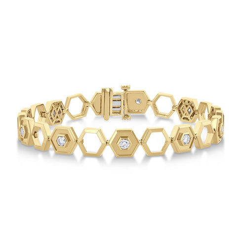 Davis Classics 14k Yellow Gold Hexagon Station Design Diamond Bracelet