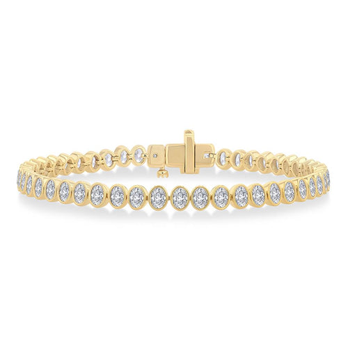 Davis Classics 14k Yellow Gold Oval-Cut Diamond Tennis Bracelet
