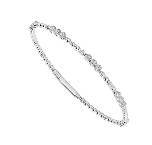 Davis Classics 14k White Gold and Titanium Flexie Beaded Diamond Station Bangle Bracelet