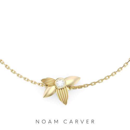 Noam Carver 14k Yellow Gold Rae Collection Frosted Floral Diamond Bar Bracelet