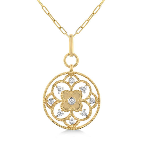 Davis Classics 14k Yellow Gold Vintage Floral Diamond Medallion Pendant Necklace