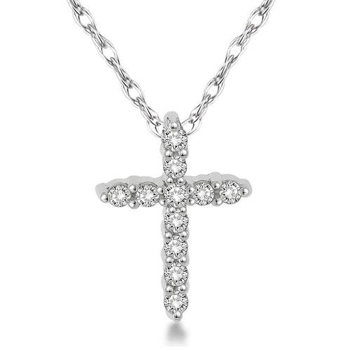 Davis Classics 14k White Gold Diamond Flair Cross Pendant Necklace