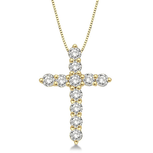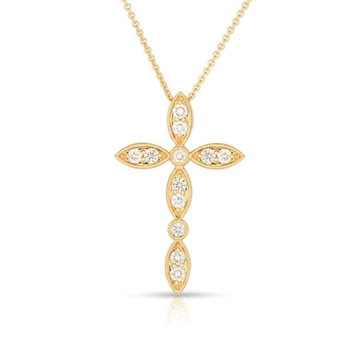 Davis Classics 14k Yellow Gold Marquise Diamond Cross Pendant Necklace