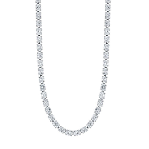 Davis Classics 18k White Gold Oval-Cut Diamond Tennis Necklace