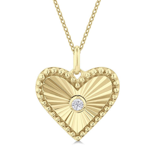 Davis Classics 14k Yellow Gold Fluted Heart Medallion Pendant Necklace