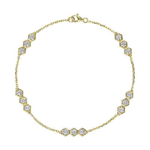 Davis Classics 18k Yellow Gold Hex Broadway Diamond Station Necklace