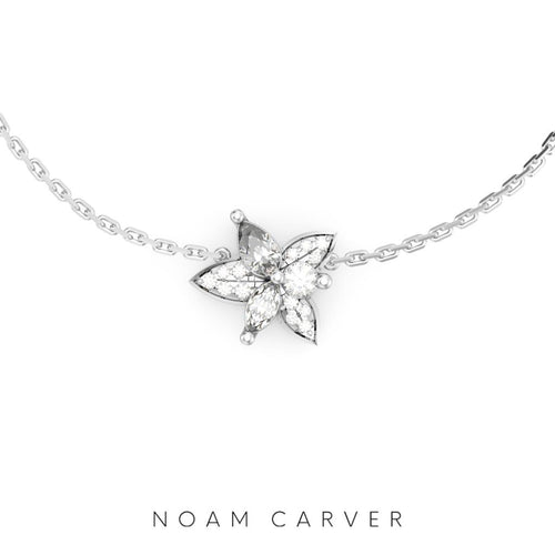 Noam Carver 14k White Gold Rae Collection High Polished Floral Diamond Pendant Necklace