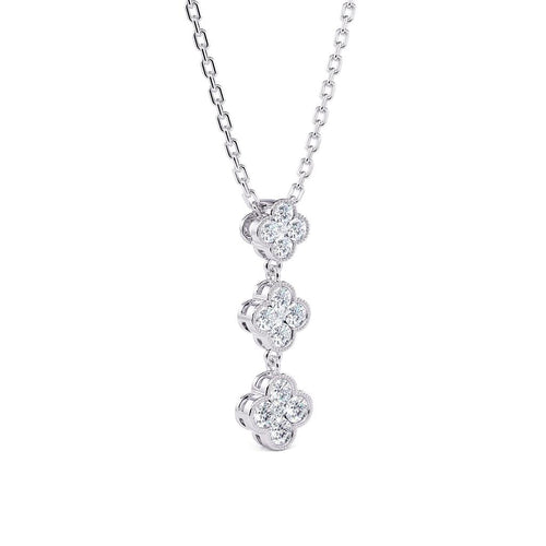 Davis Classics 14k White Gold Triple Clover Design Drop Pendant with Milgrain Detail