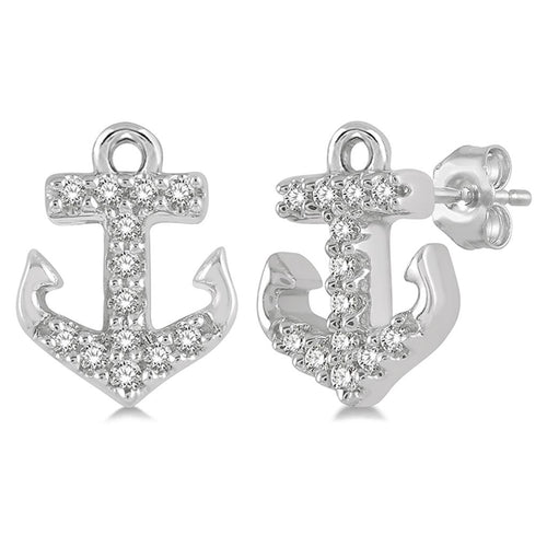 Davis Classics 14k White Gold Diamond Petite Anchor Stud Earrings