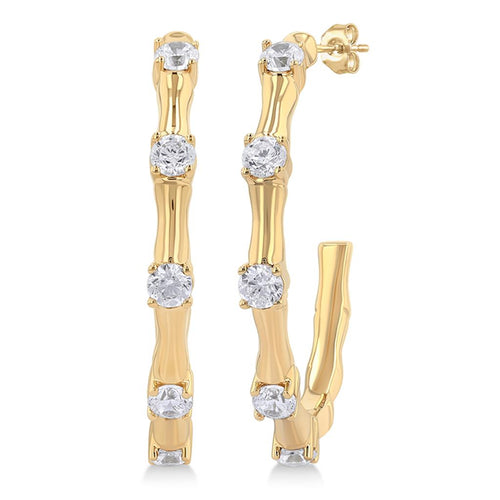 Davis Classics 14k Yellow Gold Bamboo Design Diamond Hoop Earrings