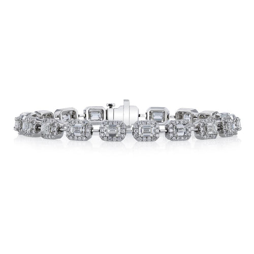 Davis Classics Platinum Halo Station Emerald Cut and Round Diamond Bracelet