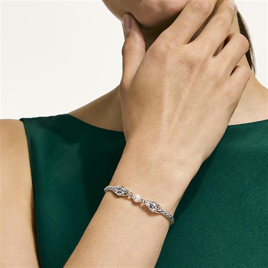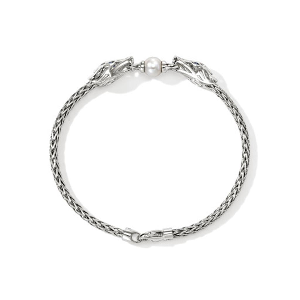 John Hardy Naga Collection Bracelet, Sterling Silver, Pearl, Blue Sapphire, 3.5mm