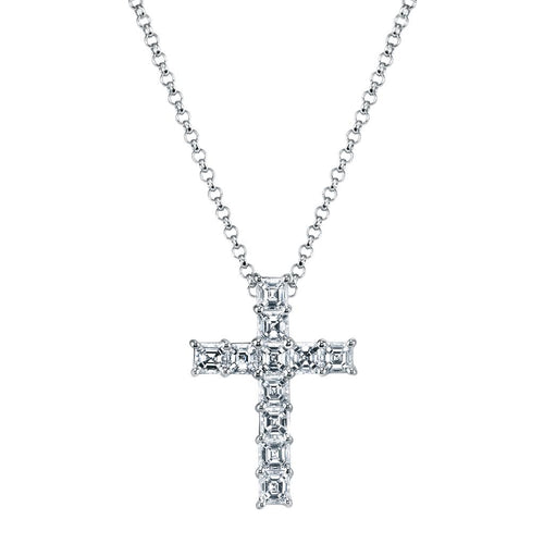 Davis Classics 14k White Gold Asscher Cut Diamond Cross Pendant Necklace