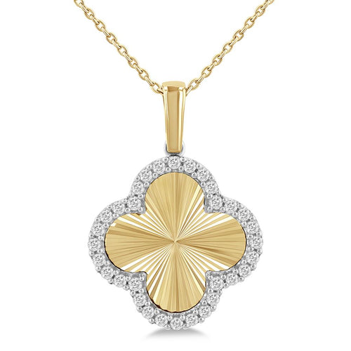 Davis Signature 14k Yellow and White Gold Diamond Halo Fluted Clover Pendant Necklace