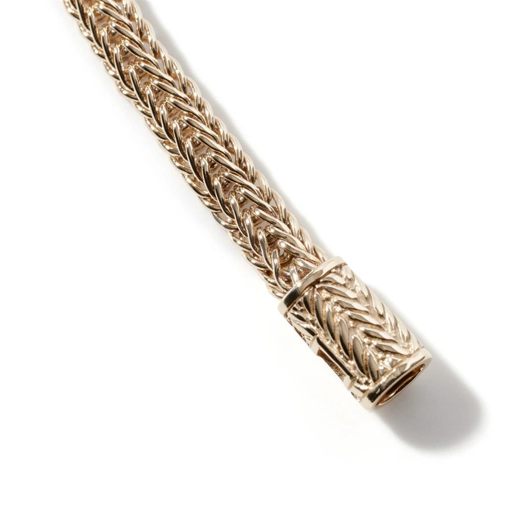 This soft woven chain bracelet brings graphic dimension and volume to your stack. Artisan handcrafted in reclaimed gold. Size medium. Style no. BUGG900359