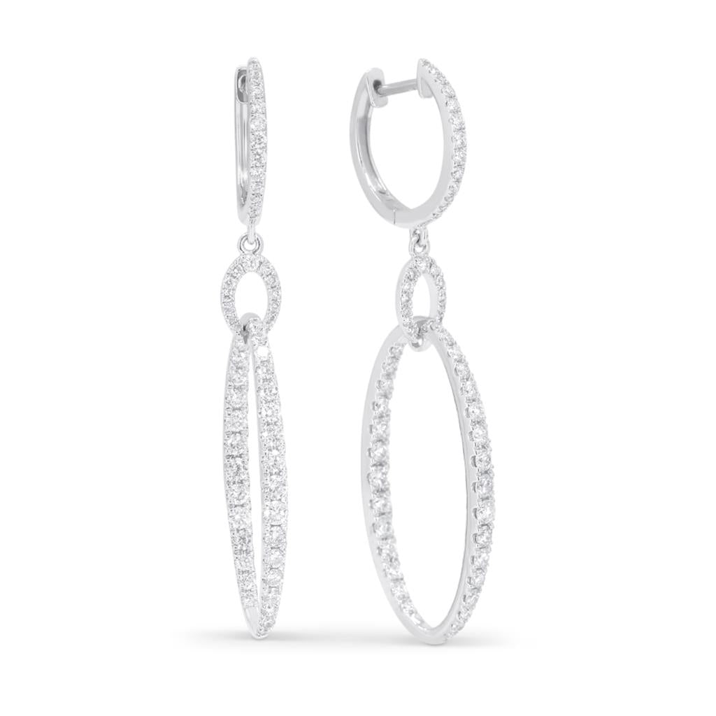 Experience unparalleled elegance with the Madison L 14k white gold double drop diamond dangle earrings. These exquisite earrings feature 100 prong-set round brilliant cut diamonds, totaling 1.33 carats, with G/H color and SI1-SI2 clarity. The double drop design creates a captivating movement, while the hinged locking full closure clasps ensure a secure and comfortable fit. Perfect for adding a touch of glamour to any occasion.