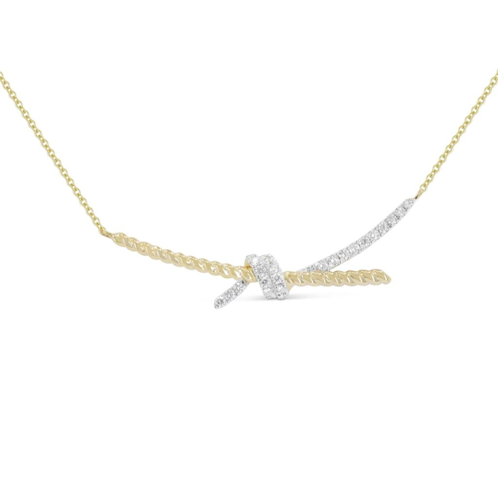 Madison L 14k Yellow Gold Wrap Design Diamond Bar Pendant Necklace