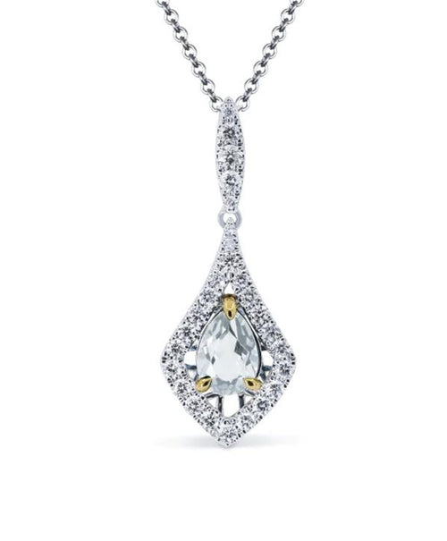 Madison L 14k Yellow and White Gold Diamond Design Halo Style Aquamarine Pendant