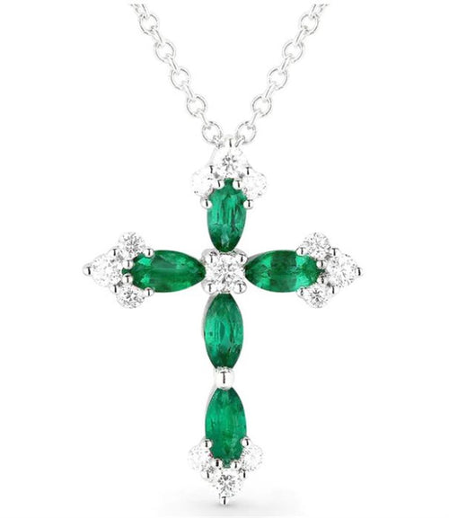 Madison L 14k White Gold Gemstone and Diamond Cross Pendant